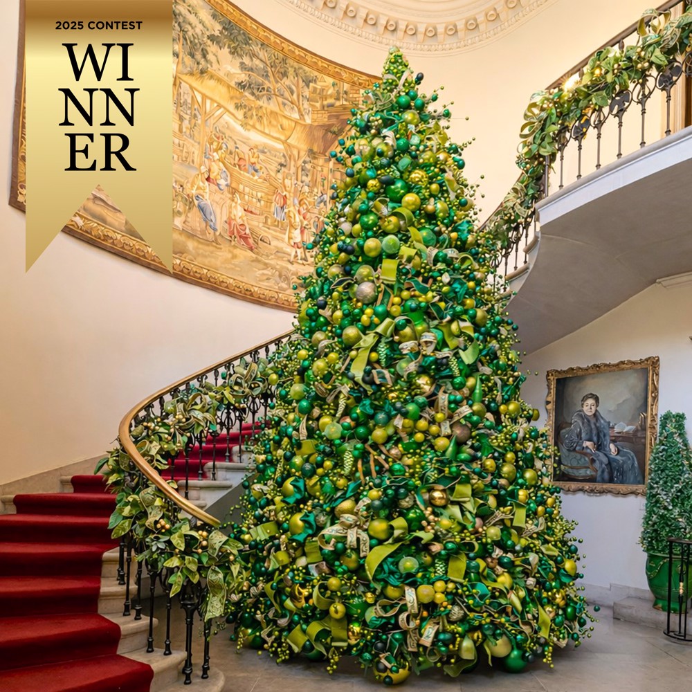 As part of the 2025 "Sweet Holiday Dreams" holiday installation at Cheekwood Estates and Botanical Gardens in Nashville, TN, the grand entrance foyer was rendered as a serene green emerald forest of trees and topiaries, inspired by nature, classic architecture and festive holiday design. Design inspiration for the "Emerald Green Entrance Foyer" at Cheekwood Estate and Botanical Gardens (Nashville, TN): The Inspiration: Inspired by the magical evergreen woodlands of my native Pacific Northwest, the antique tapestries in the room, and the 16th-century melody “Greensleeves,” I envisioned a grand entrance in layered shades of green and gold to evoke the feeling of a winter forest. The tree and topiary designs blend romantic Tudor elegance with a sense of holiday grandeur and natural splendor. The Look: The overall aesthetic is a festive, elegant woodland theme with shimmer and sparkle to add lightness and holiday flair. Natural elements such as gilded pinecones and evergreen textures further enhance the forest-inspired mood. A color palette of emerald, moss, and chartreuse, accented with touches of gold, creates a classic and inviting ambiance that harmonizes with the architectural details and antique tapestries in the space. Technique (trees): As a foundation, large reflective ornaments were placed near the trunk to enhance illumination and interior glow. To build depth and dimension, layered garlands of green ornaments were added to extend beyond the natural profile of the tree, creating a sense of movement and organic flow. Additional elements -- including sparkling branches and ribbon swags -- were then woven throughout, resulting in an opulent, sculptural design with a richly layered effect. Design goal: My overarching goal with this design was for visitors to feel as though they stepped into an enchanted forest -- a place of beauty, serenity, and timeless holiday wonder. photo credits: @sedona_john_photographer